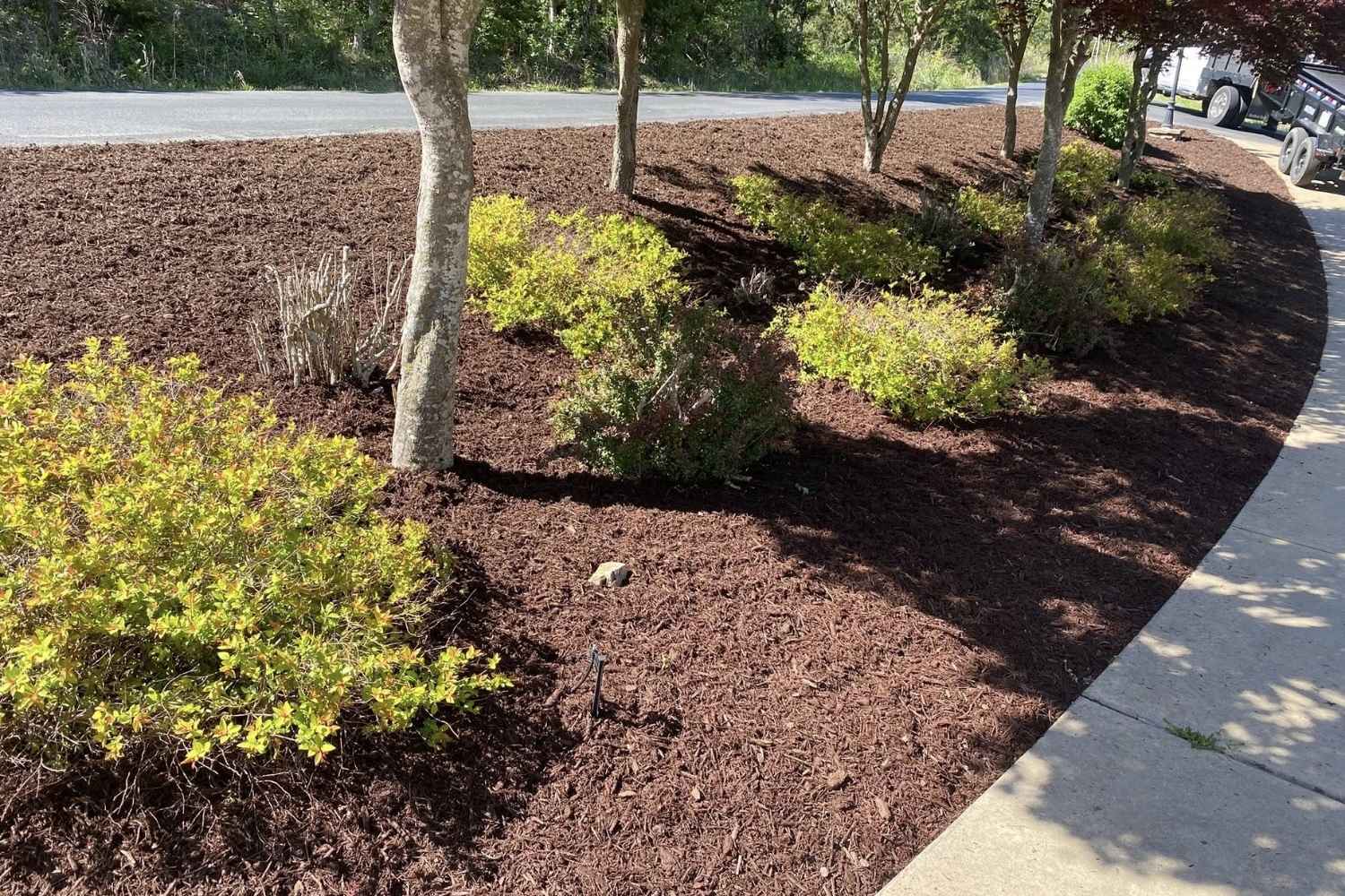Fresh mulch creates a clean, finished look around trees, shrubs, and planting areas while helping landscaping stay easier to maintain throughout the season.